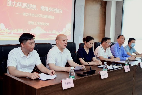 近日,四川省雅安市名山区政协办、区委统战部、区人社局、区工商联组织召开的“助力巩固脱贫、助推乡村振兴—雅安市名山区稳岗就业招聘工作启动仪式”在区党群活动中心会议室举行。