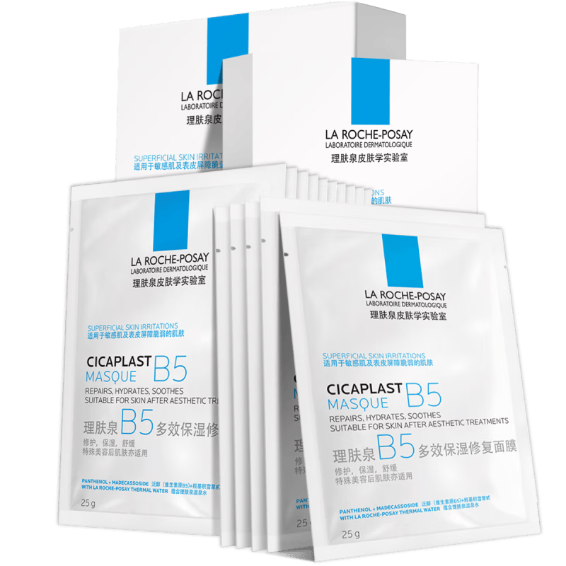 理肤泉B5面膜则是一款由孙颖莎推荐的产品,主打修护受损肌肤。它的成分包含维生素原B5和积雪草苷,能够有效改善特殊美容后的刺痛和泛红,适合需要修护的肌肤。